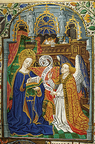 Anunciación, Master of the Munich Golden Legend, libro de Horas, siglo XV, Francia.